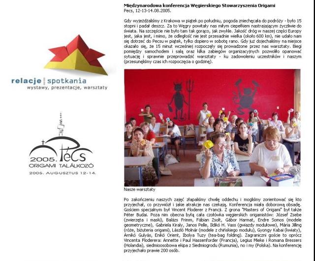 Lengyel barátaink beszámolója a 2005-ös Országos Origami találkozóról |