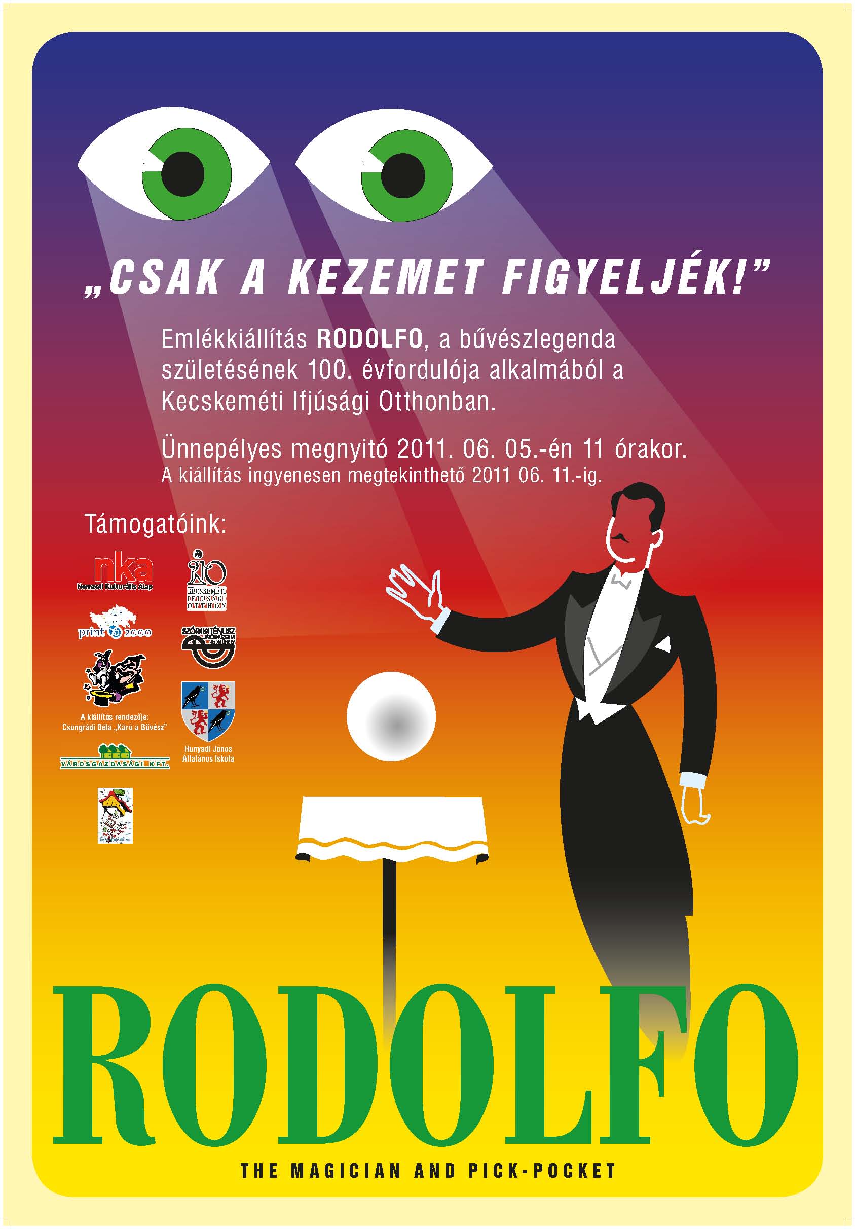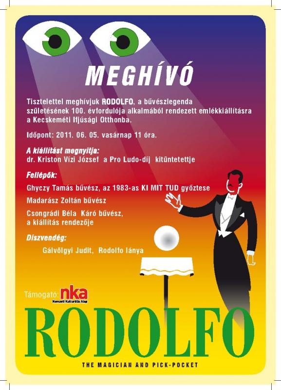 RODOLFO, a bűvészlegenda születésének 100. évfordulója alkalmából emlékkiállítás nyílik a Kecskeméti Ifjúsági Otthonban.