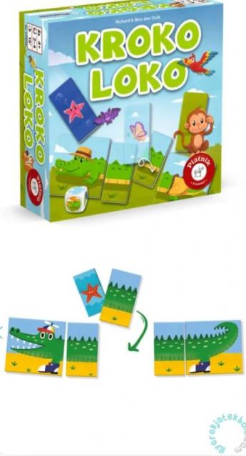 Kroko Loko családi társasjáték 2-4 főre, 4 éves kortól ajánlott 15 perces játékidővel.
